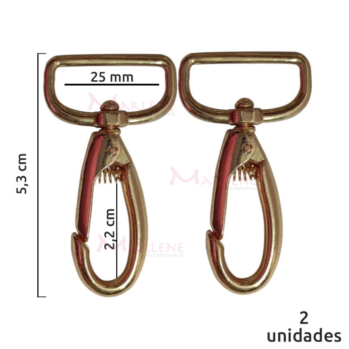 Detalhes: Mosquetão 25mm ouro gordo 1057 sem gatilho com 2 unidades