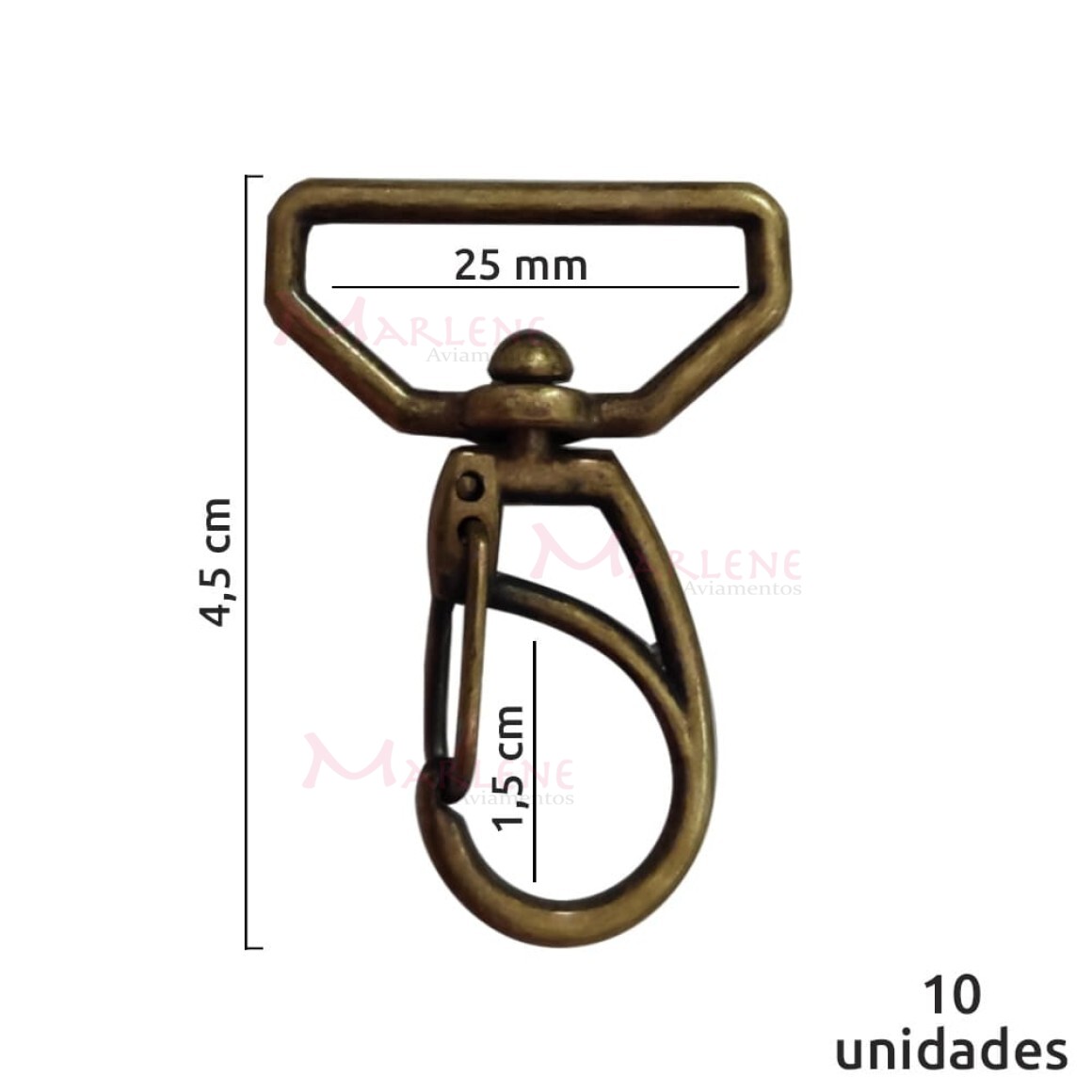 Detalhes: Mosquetão 25mm ouro velho 1166 aberto com 10 unidades