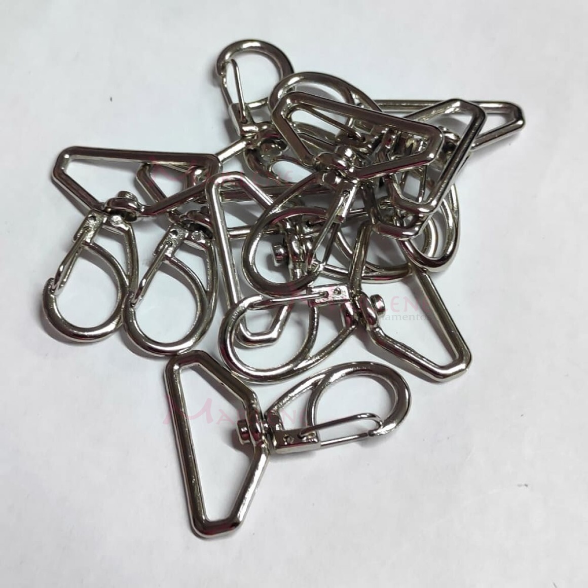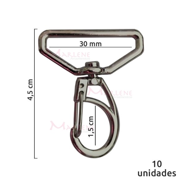 Uso: Mosquetão usado em bolsas, mochilas, acessórios decorativos, chaveiros, entre outros.