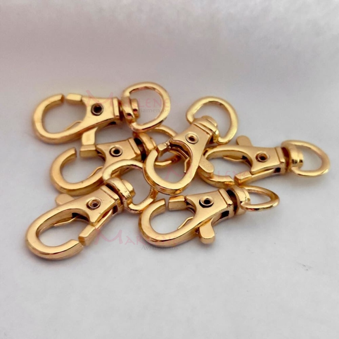 Detalhes: Mosquetão 8 mm ouro nacional 1044 com 10 unidades no pacote.