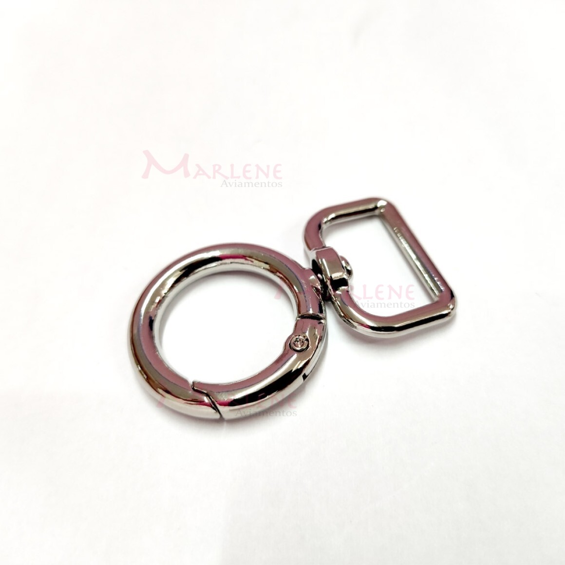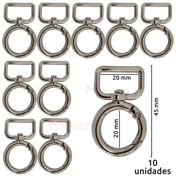 Detalhes: Mosquetão com argola articulada 20mm níquel com 10 unidades
