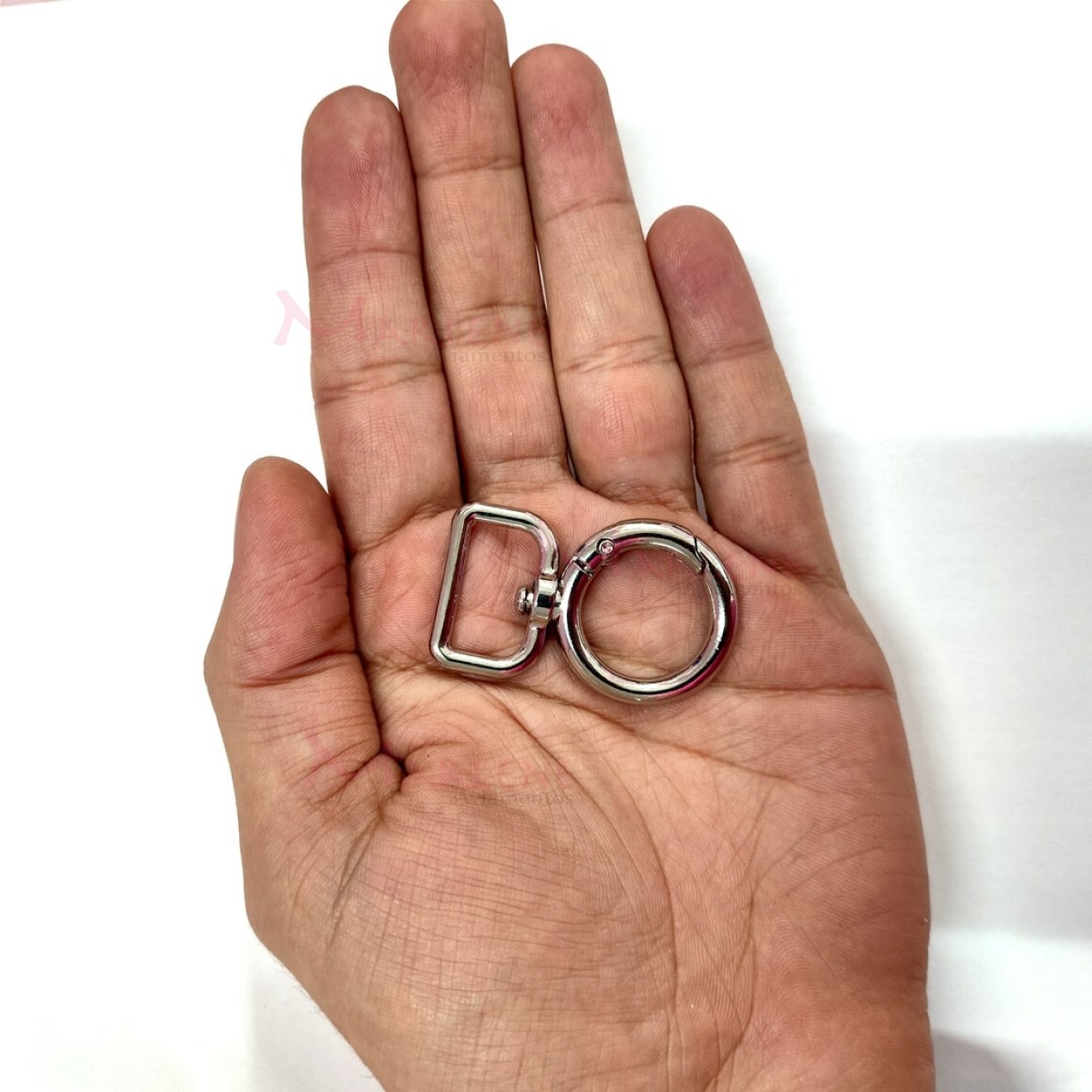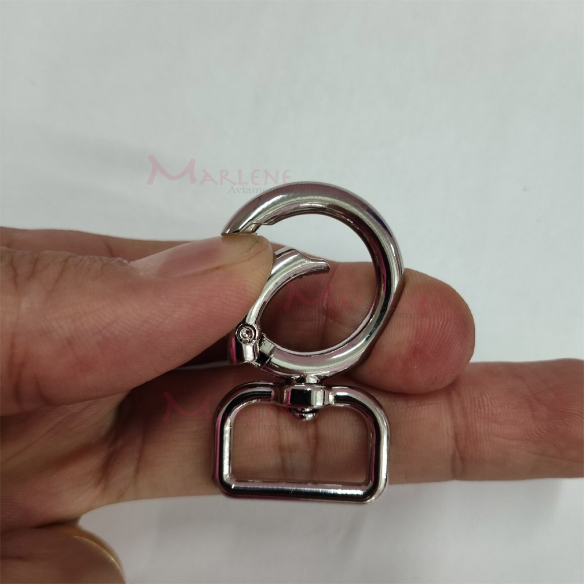 Uso: Mosquetão com argola articulada de 20mm usado em alças de bolsas, mochilas, acessórios decorativos. Perfeito para alças de couro sintético, alças de corrente, alças de cadarço de algodão ou poliéster, entre outros. Além de ficar super linda, deixa a remoção da alça super fácil.