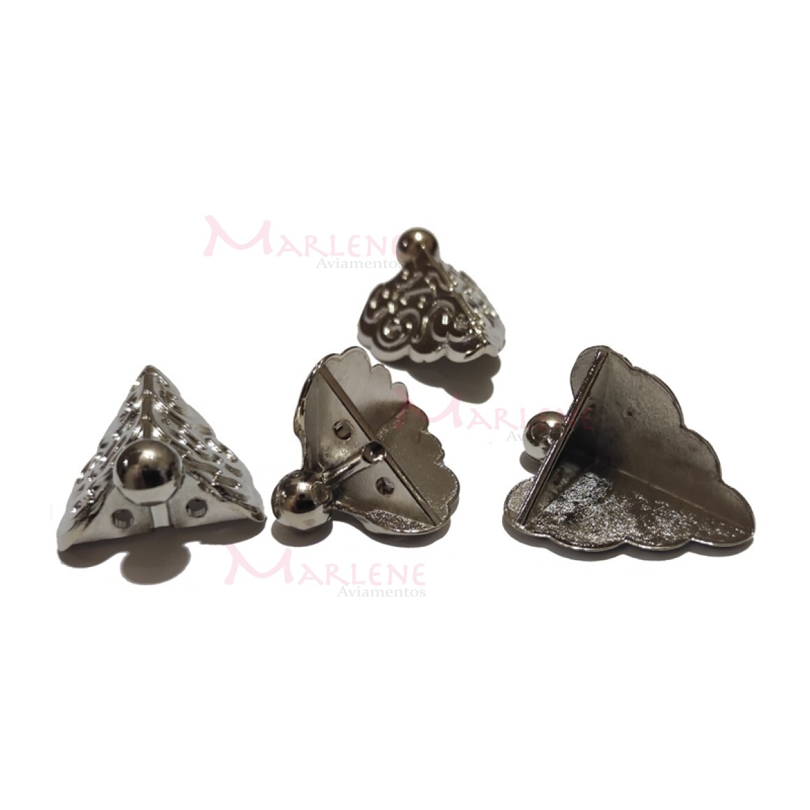 Detalhes: Pé de metal cantoneira grande trabalhado 4 unidades níquel
