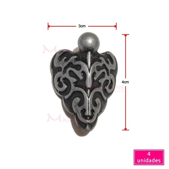 Detalhes: Pé de metal cantoneira grande trabalhado 4 unidades prata velha