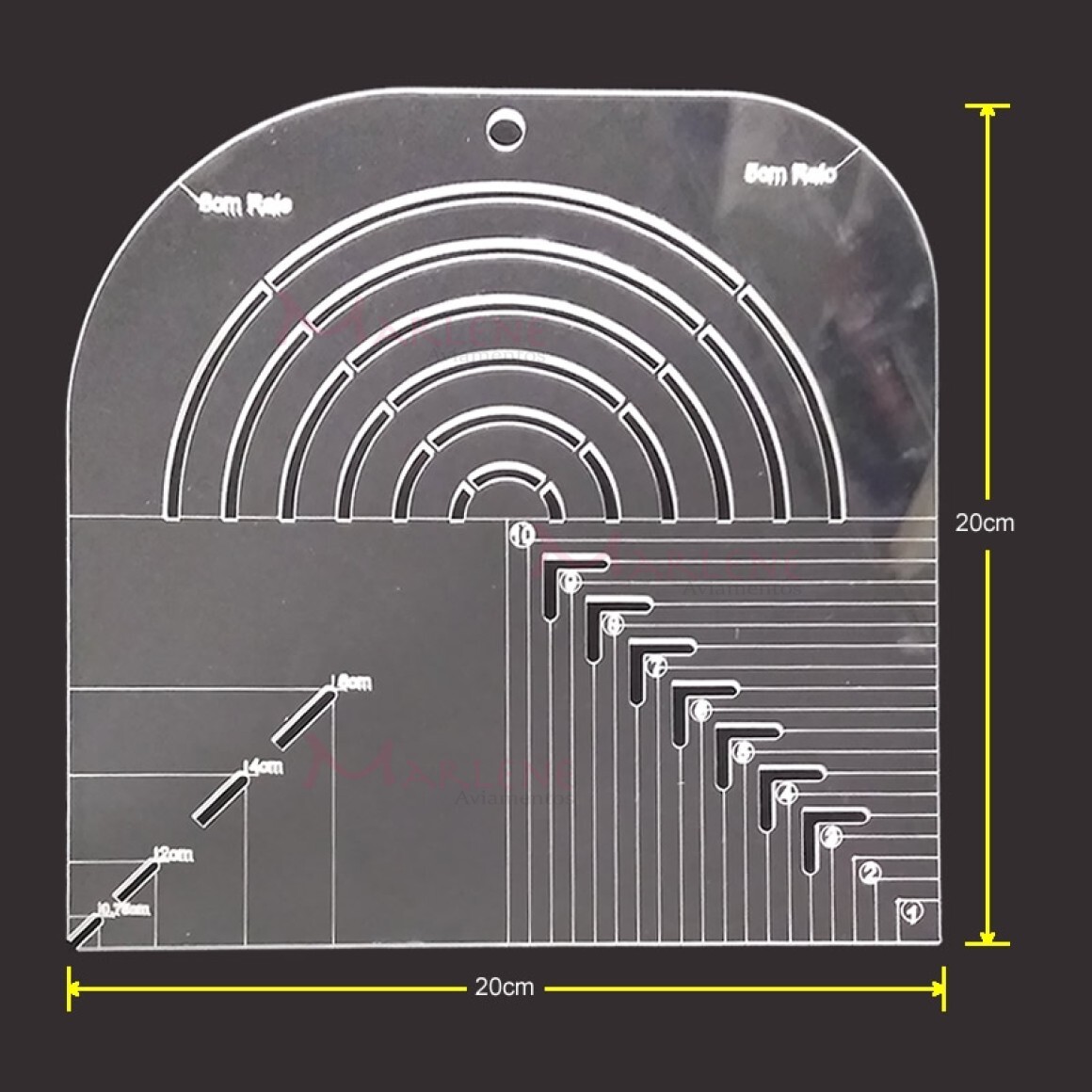 Detalhes: Régua 3 em 1 20x20 - Canto mitrado, caixa de leite e circular.