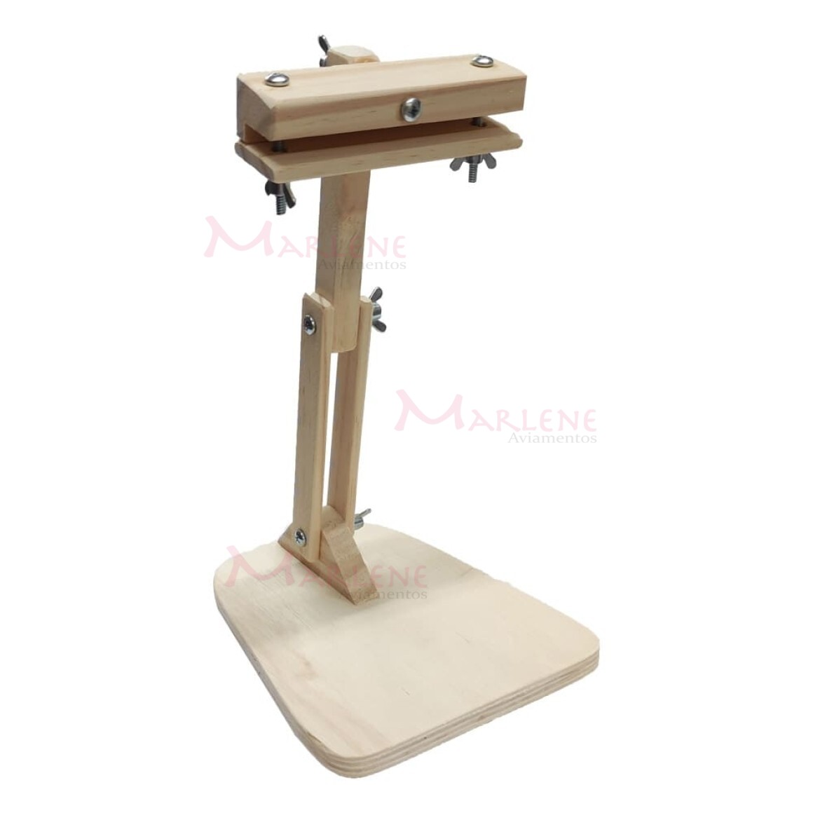 Uso: Usado para deixar o bastidor suspenso e liberando as mãos para uso exclusivo no bordado, facilitando a realização dos trabalhos. A altura pode ser ajustada mexendo na inclinação do mesmo, deixando na posição que você achar mais confortável.