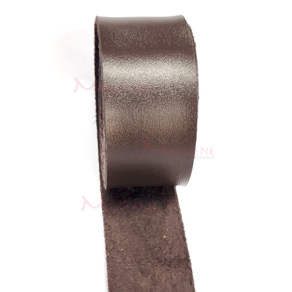Detalhes: Tira de couro sintético 40mm marrom café com 1,4m