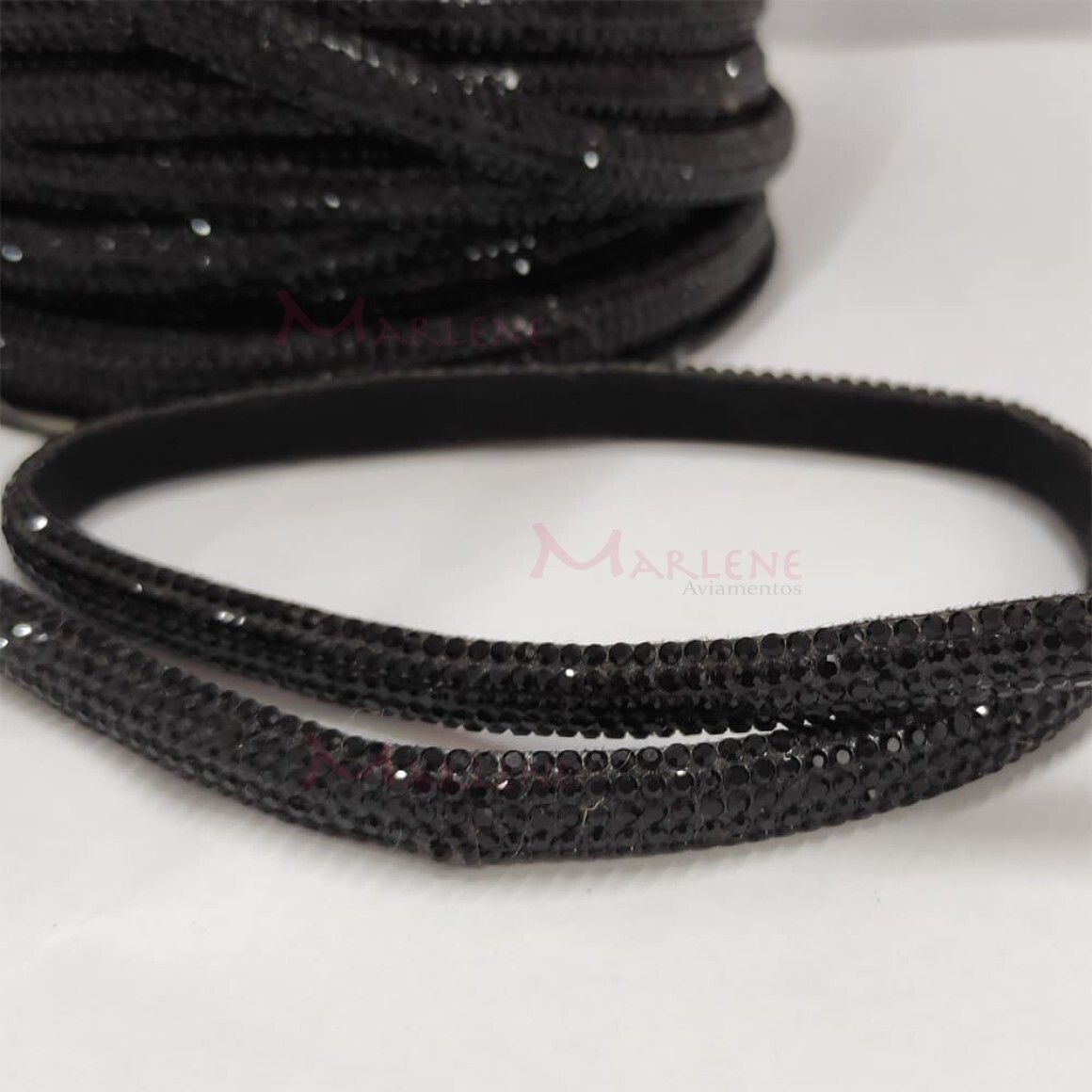 Detalhes: Tubo de strass (strass meia cana) 10mm preto GHB-004-TZ por metro
